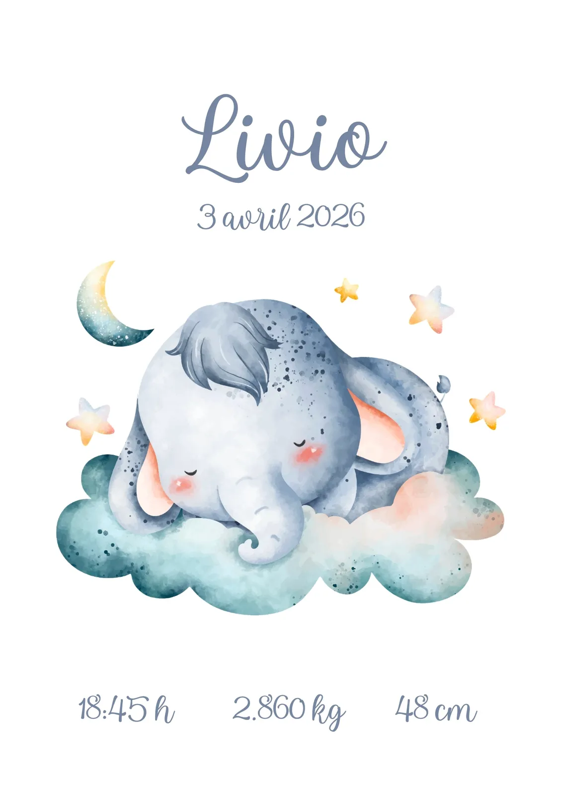 Affiche enfant éléphant bébé personnalisée